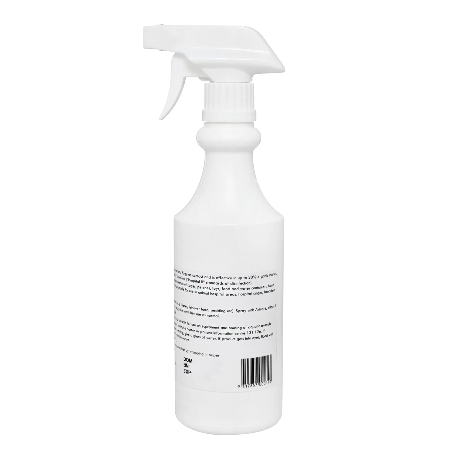 Avicare is recommended for use as a safe and effective disinfectant cleanser for all situations that require a high level of hygiene, such as brooders, incubators, hospital cages and for disinfection of equipment.