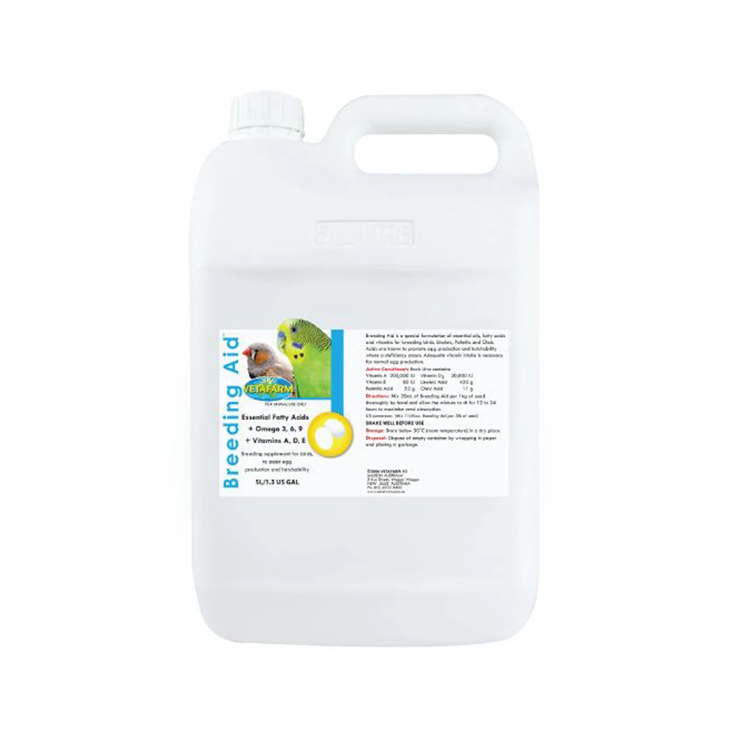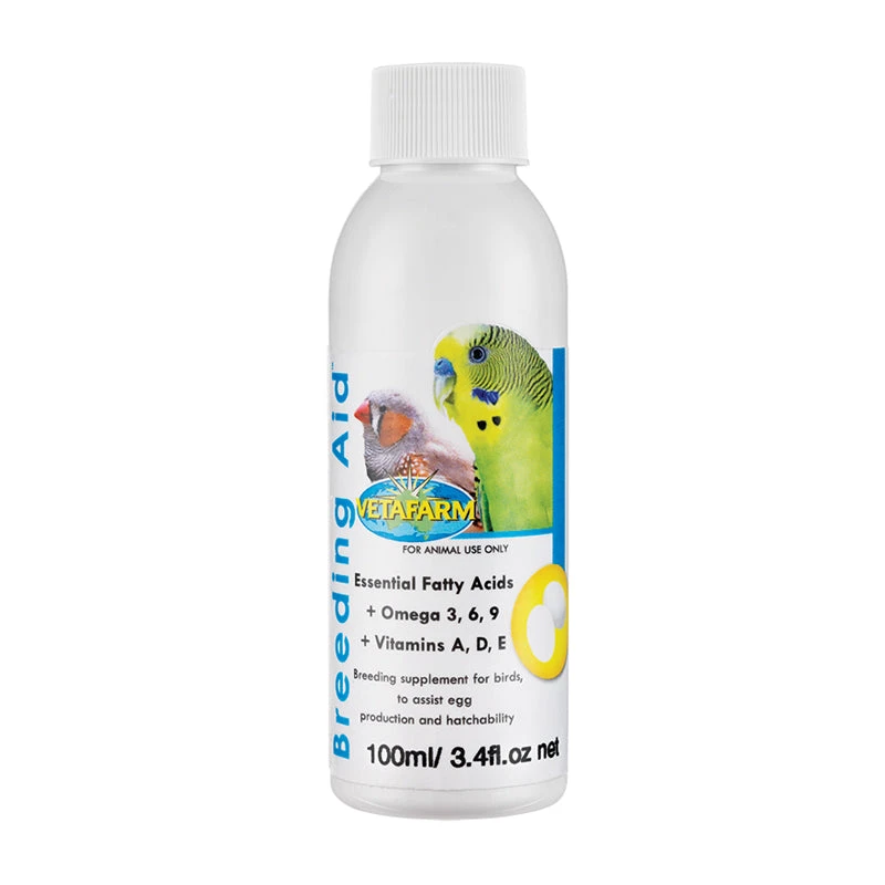 Breeding Aid contains essential fatty acids for membrane development, egg laying, chick growth and immunity, and Vitamin A for cell development, Vitamin D3 for calcium absorption, bone growth and egg formation and Vitamin E, an antioxidant that helps maintain cell membranes.
