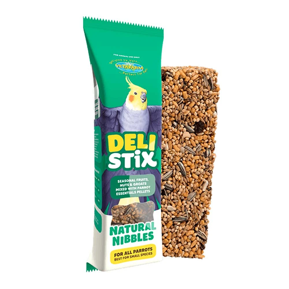 Vetafarm DeliStix Natural Nibbles for parrots has a hanging design which supports your parrot’s instinct to forage, providing rewarding mental stimulation and diverse nutrition.