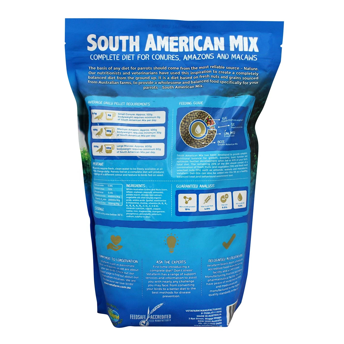 South American Mix should be used as a total diet but may also be used as a balanced addition to seed and fruit diets.
