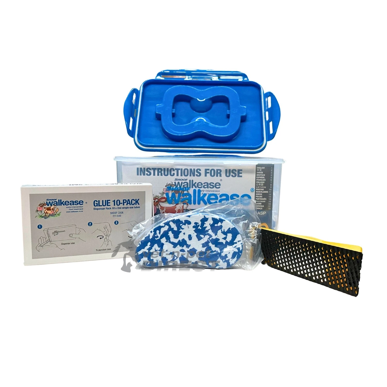 The Starter Kit comprises: 10 Walkease blocks, a tube of special Walkease superglue, a Walkease rasp and 10 pairs of latex gloves, all packed in a useful resealable plastic container.