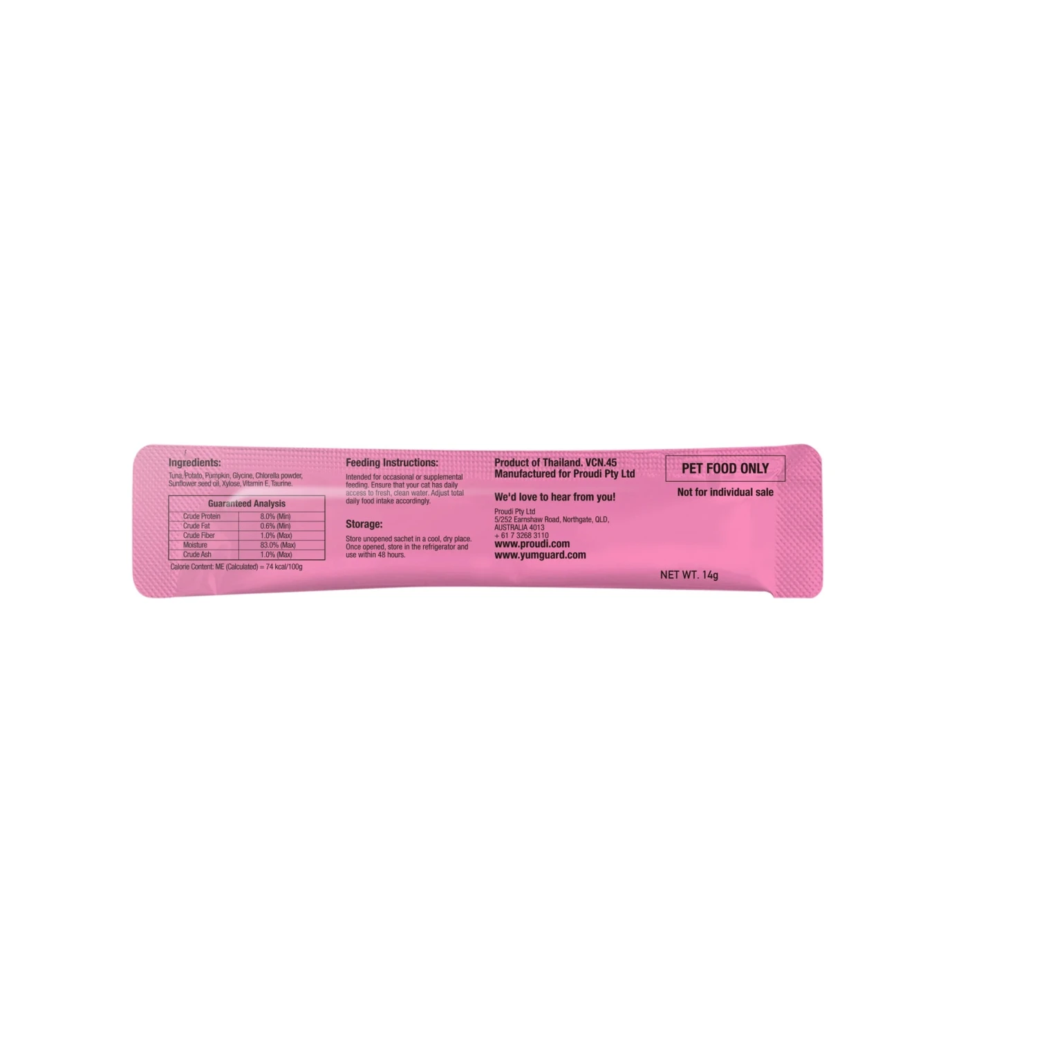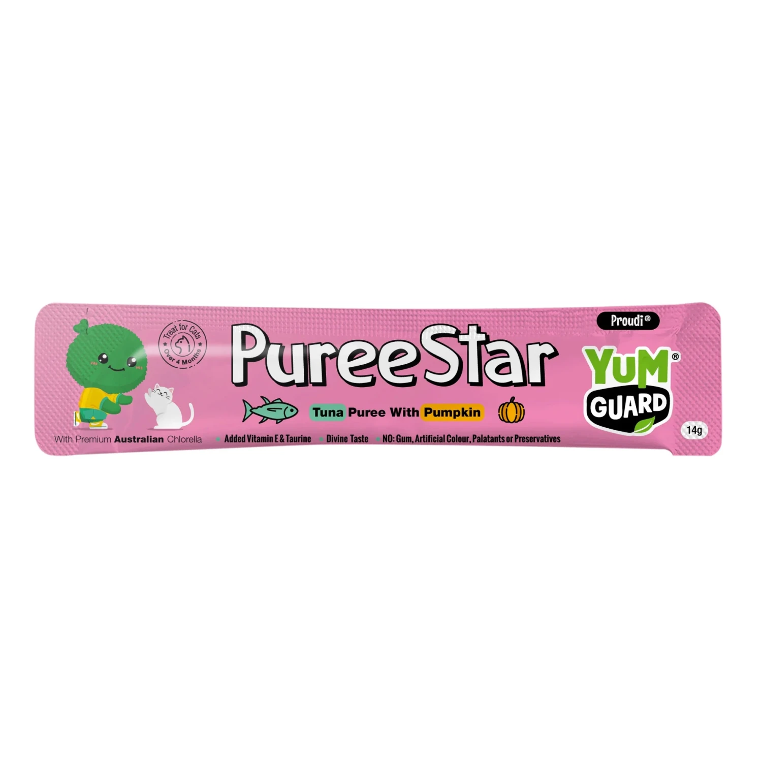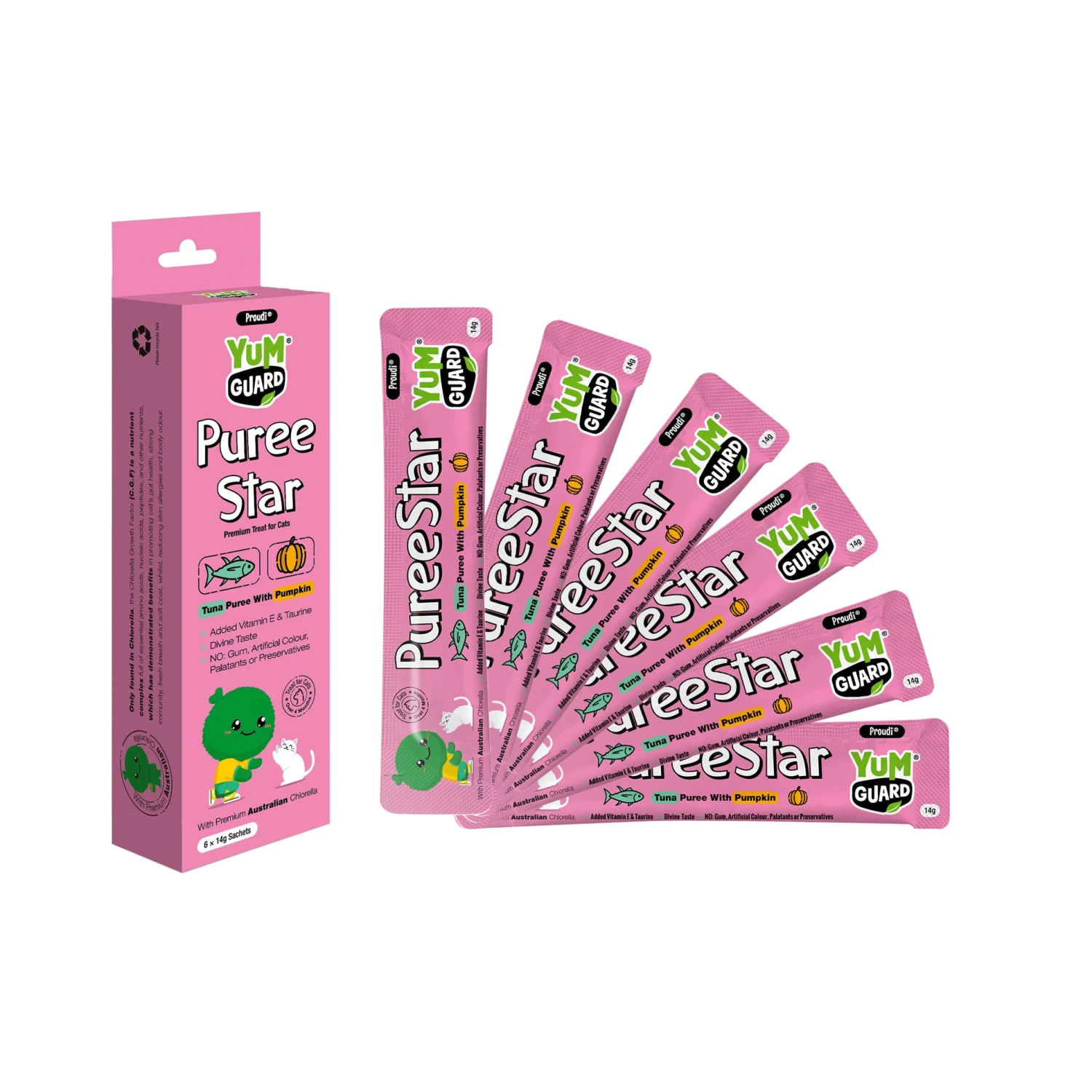 Give your cat a treat they’ll love with YumGuard’s Puree Star Tuna with Pumpkin – a nutritious snack packed with essential vitamins and minerals, including the renowned Chlorella growth factor for healthy tissue growth and repair.