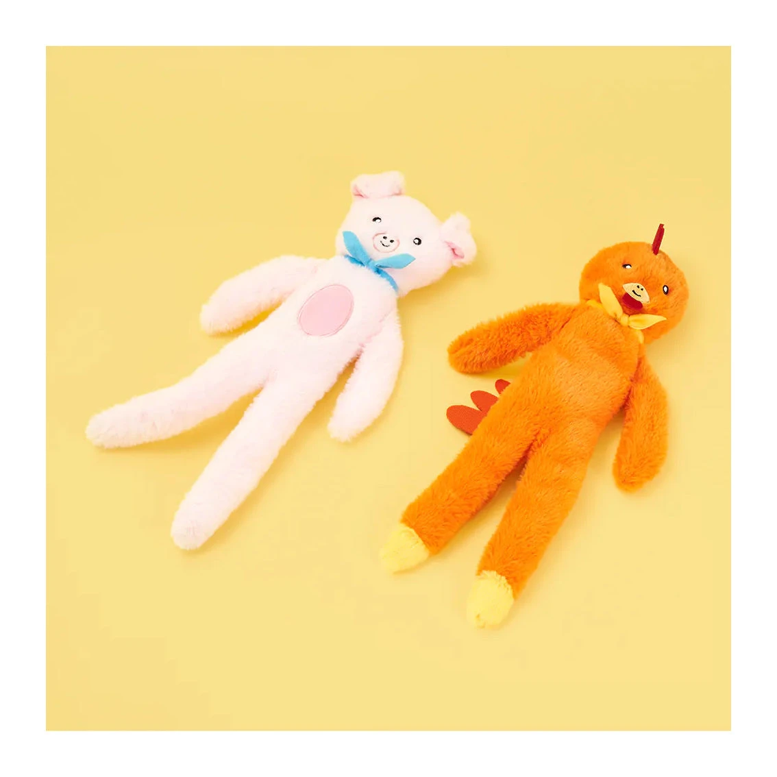 ZippyPaws Fluffy Peltz are adorable stuffing filled plush dog toys that provide hours of squeaking fun! This set includes 2 Fluffy Peltz (1 Chicken and 1 Pig).