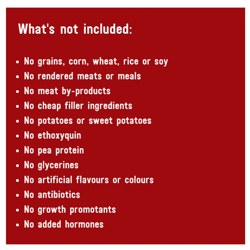 Chicken, Chicken Liver, Chicken Heart, New Zealand Green Mussel, Chicken Bone, Lecithin, Inulin from Chicory, Dried Kelp, Minerals (Dipotassium Phosphate, Magnesium Sulfate, Zinc Amino Acid Complex, Copper Amino Acid Complex, Iron Amino Acid Complex, Manganese Amino Acid Complex, Sodium Selenite), Salt, Preservative (Citric Acid, Mixed Tocopherols), Vitamins (Choline Chloride, Thiamine Mononitrate, Pyridoxine Hydrochloride, Folic Acid, Vitamin D3 Supplement), DL-Methionine, Taurine.