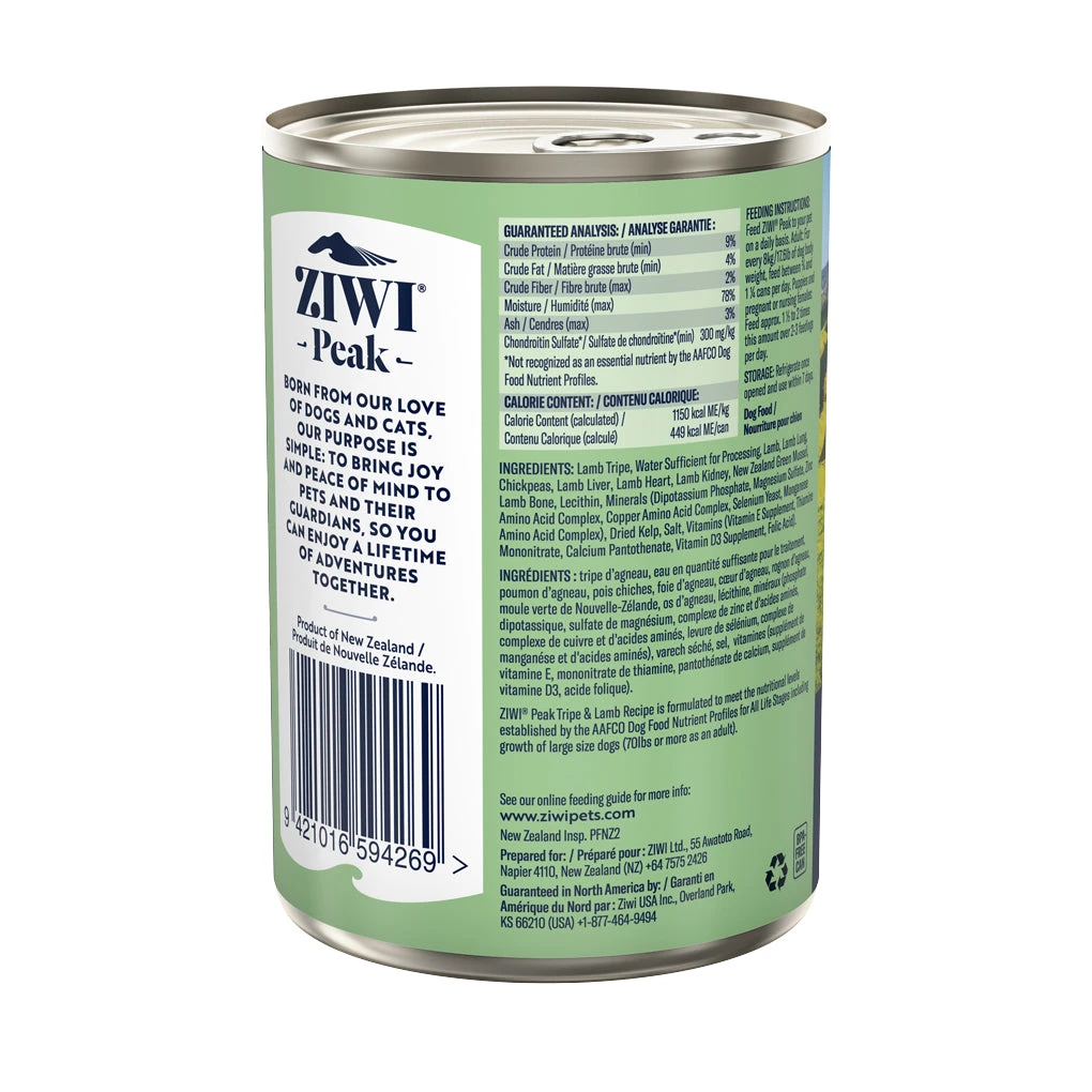 Ziwi Peak Moist Tripe & Lamb For Dogs is a single-protein option for pets with protein allergies and sensitivities.