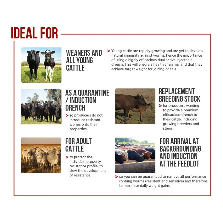 - Treats gastrointestinal worms, cattle tick, sucking lice