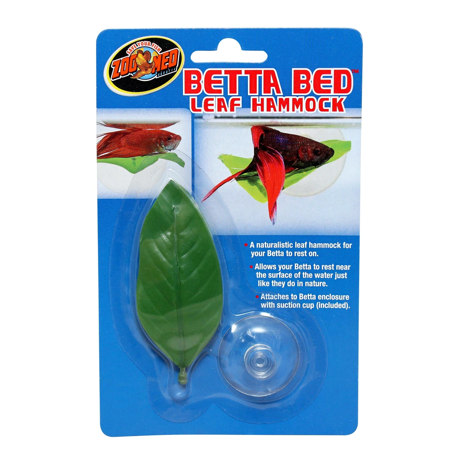 Attaches to Betta tank with suction cup (included).